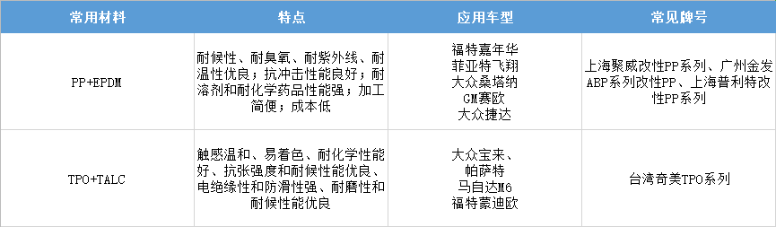 保險杠表皮常用材料及其特點